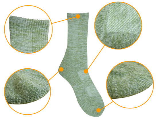 ・爪先から踵までの足の裏は、分厚いパイル編みでクッション性が良く、足を衝撃から守り爪先の冷えを防ぎます。