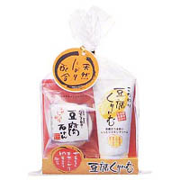 豆腐の原料である大豆エキス(イソフラボン)と、豆腐作りに欠かすことの出来ないミネラルたっぷりの苦汁(ニガリ)を配合した化粧石鹸です。