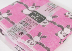 白雪友禅ハンカチ ハッピーパンダ(ピンク)