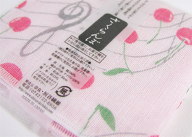 ガーゼのように柔らかく、タオルのような吸水性のハンカチです。友禅染めと色無地のリバーシブル仕立て。