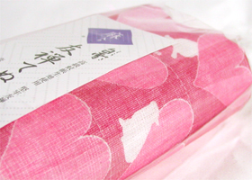 表面は美しい友禅染、裏面は白い片麻蚊帳生地のリバーシブル仕立て。食器拭きやタオル、糊を落とさずテーブルのアクセントとしてなどにご利用いただけます。