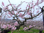 | 桜の花が咲き終わるころ、薄いピンクの桃の花が桃畑一面に広がります。 |
