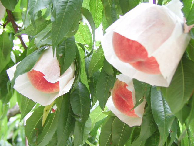 | 収穫前の桃です。一番良い状態の時に収穫されます。 |