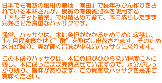 | 晴見みかん「本誠農園」 | 木成りハッサク「本誠農園」 |