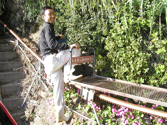 | 海沿いの道にあるみかん畑への入り口です。田村にはこの入り口がいくつもあります。 |